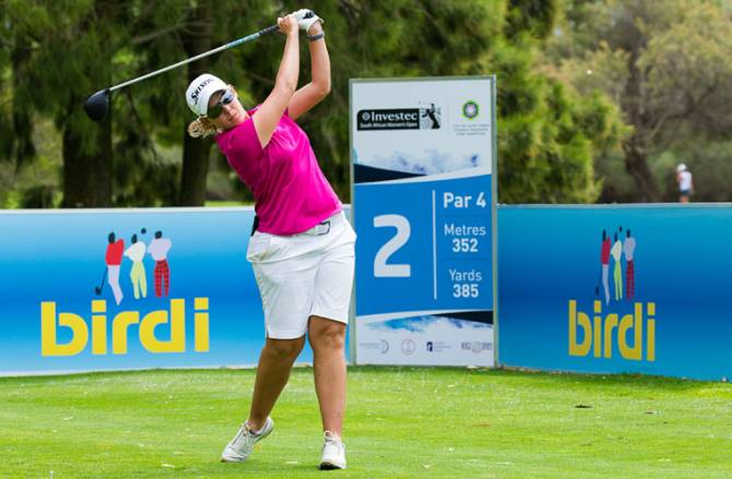 Maintaining the good form that earned her an eighth Sunshine Ladies Tour trophy with a five-shot winning margin in the Joburg Ladies Open last month, South Africa’s leading international golfer made a measured start with a bogey on her second hole and a birdie on her seventh for a level par front nine, but she racked up three birdies on the backward nine, with gains at the 11th, 15th and 18th.