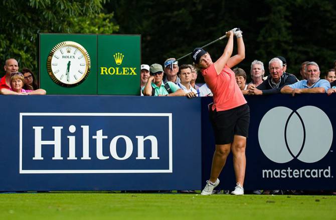 The first-round leader did not tee off until 2pm, by which time a number of players had overtaken her on the leaderboard, but she held her nerve to post five birdies and reach 12 under for the tournament.