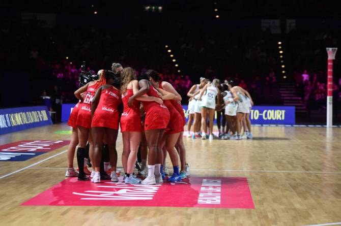 England started the brighter of the two, going ahead 3-1 in the early stages after strong defensive work and precision shooting from Eleanor Cardwell.