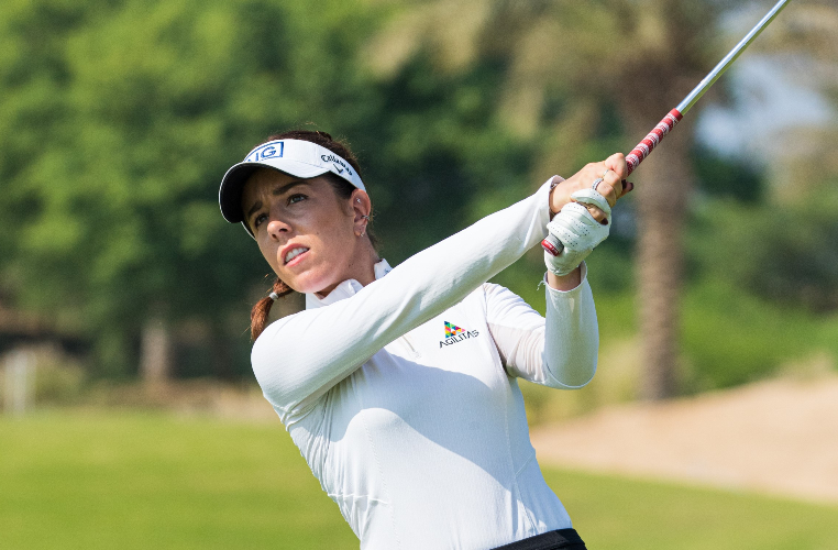 Argentina’s Magdalena Simmermacher and Spain’s Carmen Alonso are tied for third in the individual competition having shot rounds of 66 (-6).