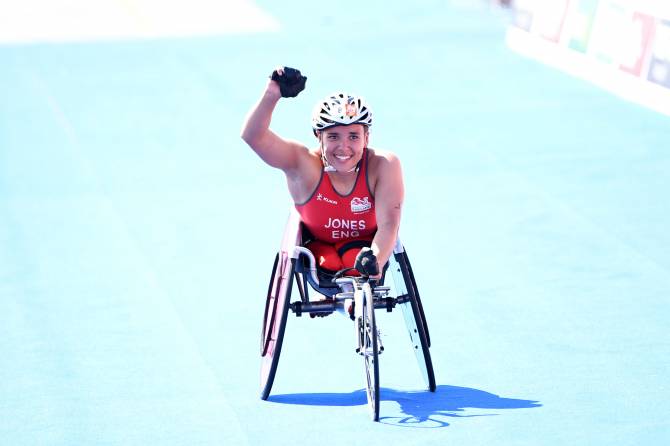 Because of a staggered start where PTWC 2 (least impaired wheelchair users) athletes started 3.58 minutes behind PTWC 1 athletes, Jones exited the water in third place, 3.37 behind Parker, but recorded the fastest swim. And it was in the cycling and running where Jones proved too good. She soon overtook Tapp on the cycle, before Parker tired on the run.