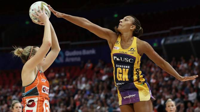 The match was disrupted when the blood rule forced both Pettitt and Pretorius off the court briefly while Lightning centre Laura Scherian was cautioned for repeated contact, as the Giants rugged defence began to take effect.