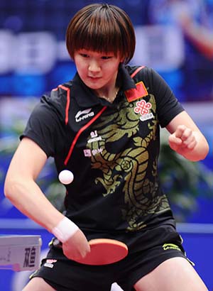 She overcame Lee Ho Ching (13-11, 11-8, 11-8) and Jiang Huajun (11-6, 11-8, 7-11, 11-8) in a three-one victory.