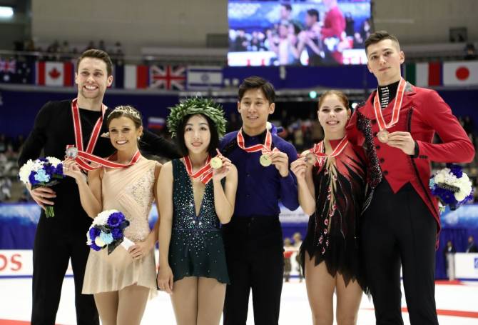 Olympic silver medalists Wenjing Sui/Cong Han of China skated to a confident victory at NHK Trophy in Sapporo (JPN) with a little over 18 points to spare on Saturday. Canada’s Kirsten Moore-Towers/Michael Marinaro earned the silver medal and the bronze went to Anastasia Mishina/Aleksandr Galliamov of Russia. All three teams qualified for the ISU Grand Prix of Figure Skating Final.